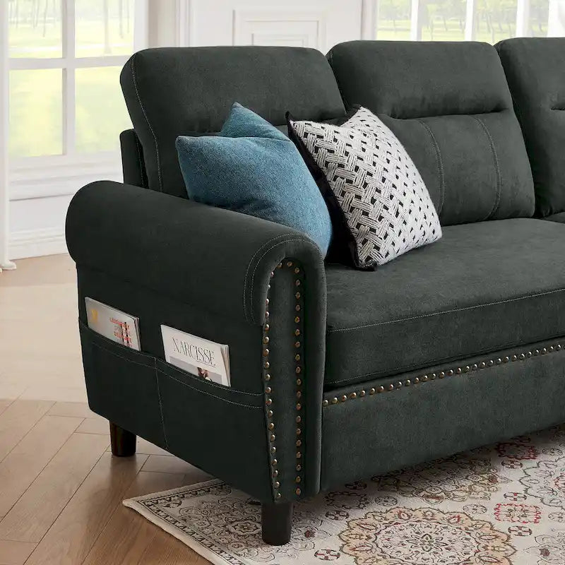 - Modern Sectional: American style rolled armrest, nailhead design and high-end fabric make the sectional modern and beautiful. You can show your sofa proudly at any angle in front of your friends
