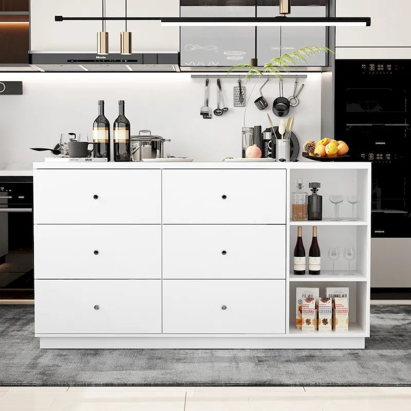 63W Kitchen Island White Storage Unit with Drawers and Cabinets - 63