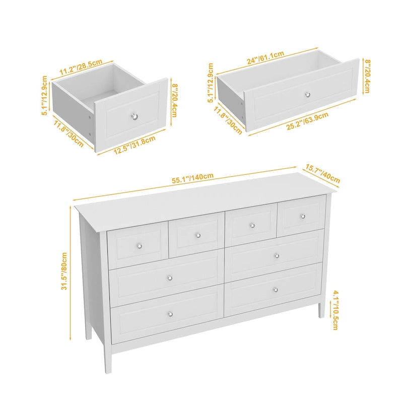 Ample Storage: Measuring at 55.1 inches in width and 31.5 inches in height, our dresser offers expansive space to organize your garments, linens, and more.