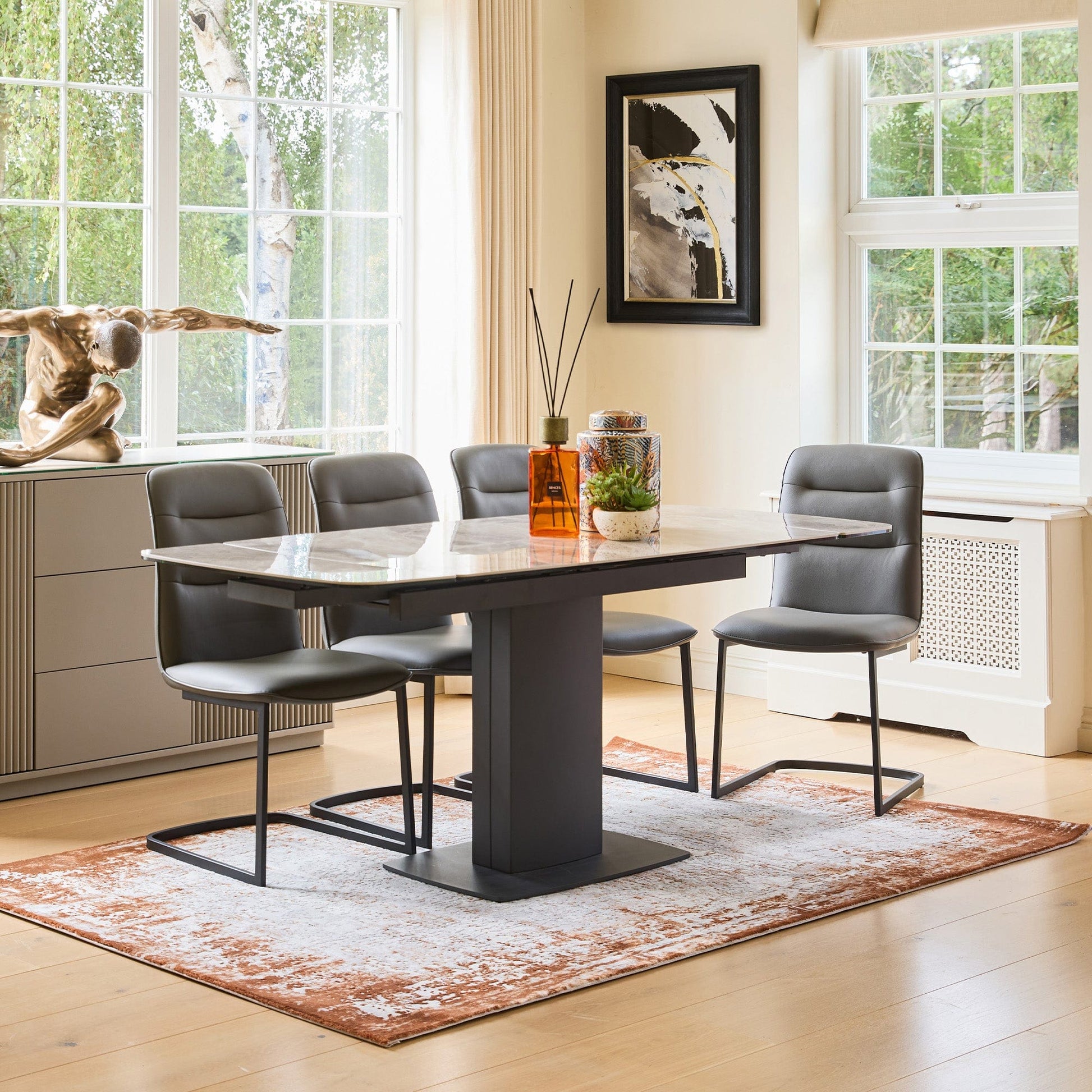 The Campari dining table is a sleek and stylish contemporary piece, taking a beautifully compact form, yet extending easily when extra seating is required. Featuring an elegant grey ceramic top, the Campari dining table is perfect for those who want to entertain without compromise in a smaller space.
