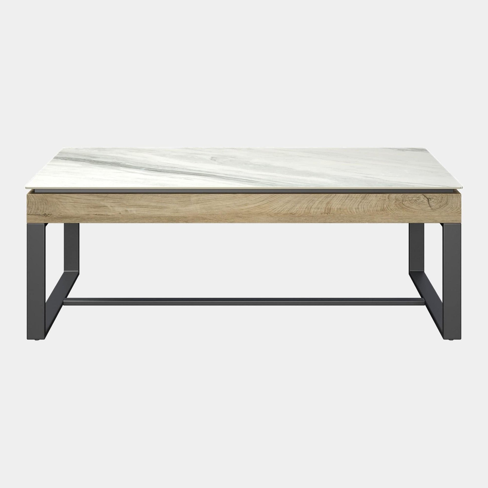 The Capri White Ceramic Collection is designed to complement any traditional or contemporary living space, infusing it with enduring elegance and modern sophistication. The White sintered ceramic top, wooden veneer frame, and gun grey powder-coated metal tube construction create a sophisticated and modern look.