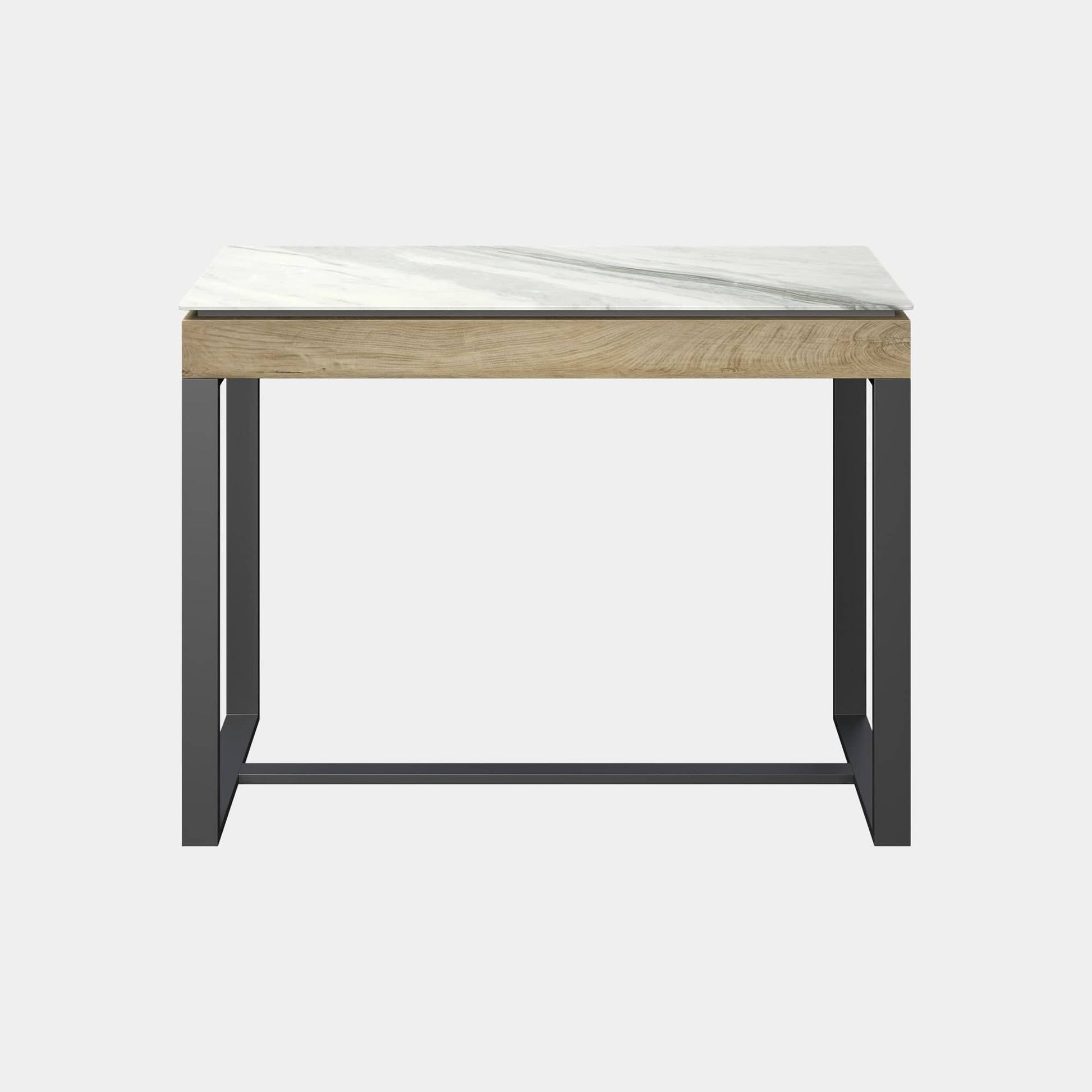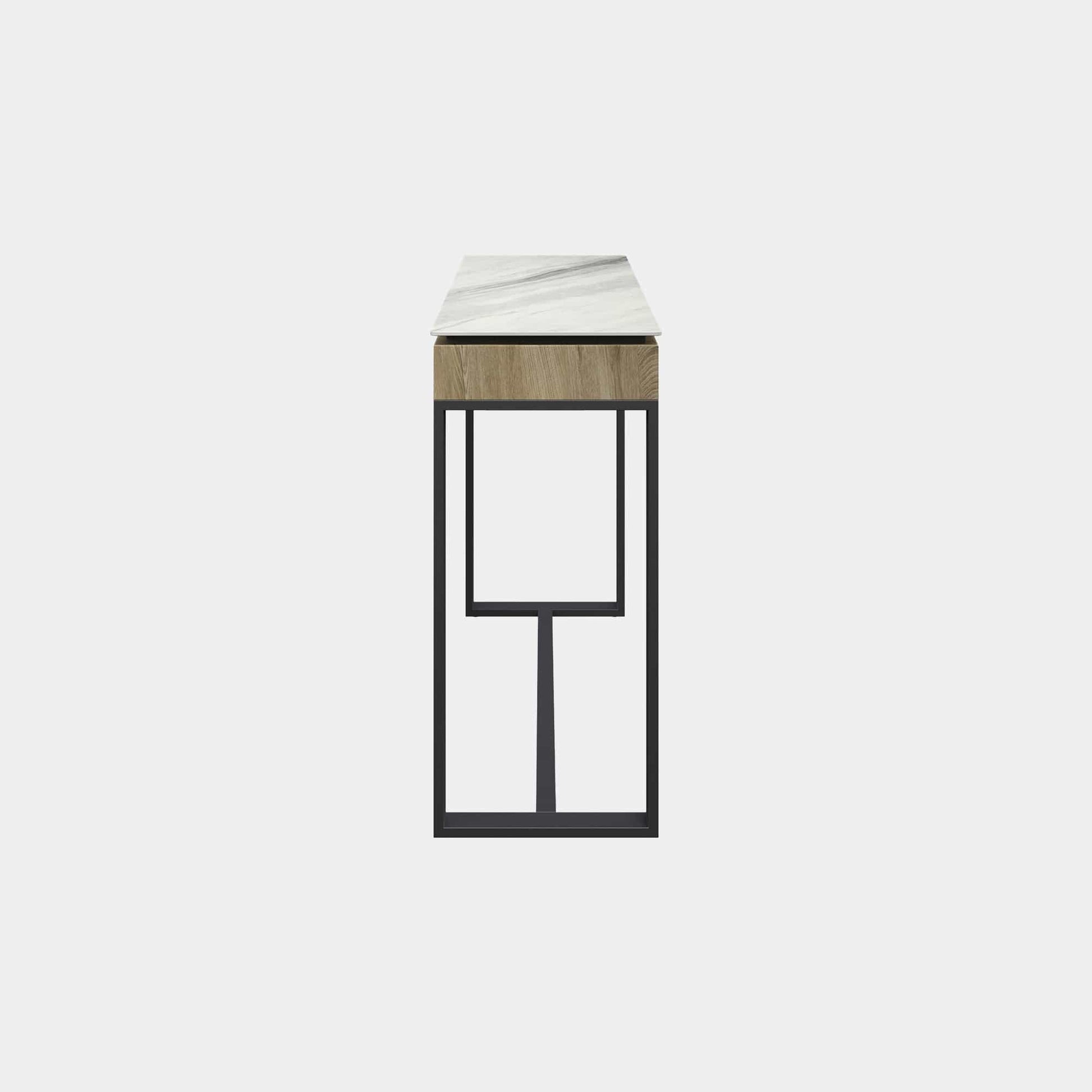 The Capri White Ceramic Collection is designed to complement any traditional or contemporary living space, infusing it with enduring elegance and modern sophistication. The White sintered ceramic top, wooden veneer frame, and gun grey powder-coated metal tube construction create a sophisticated and modern look.
