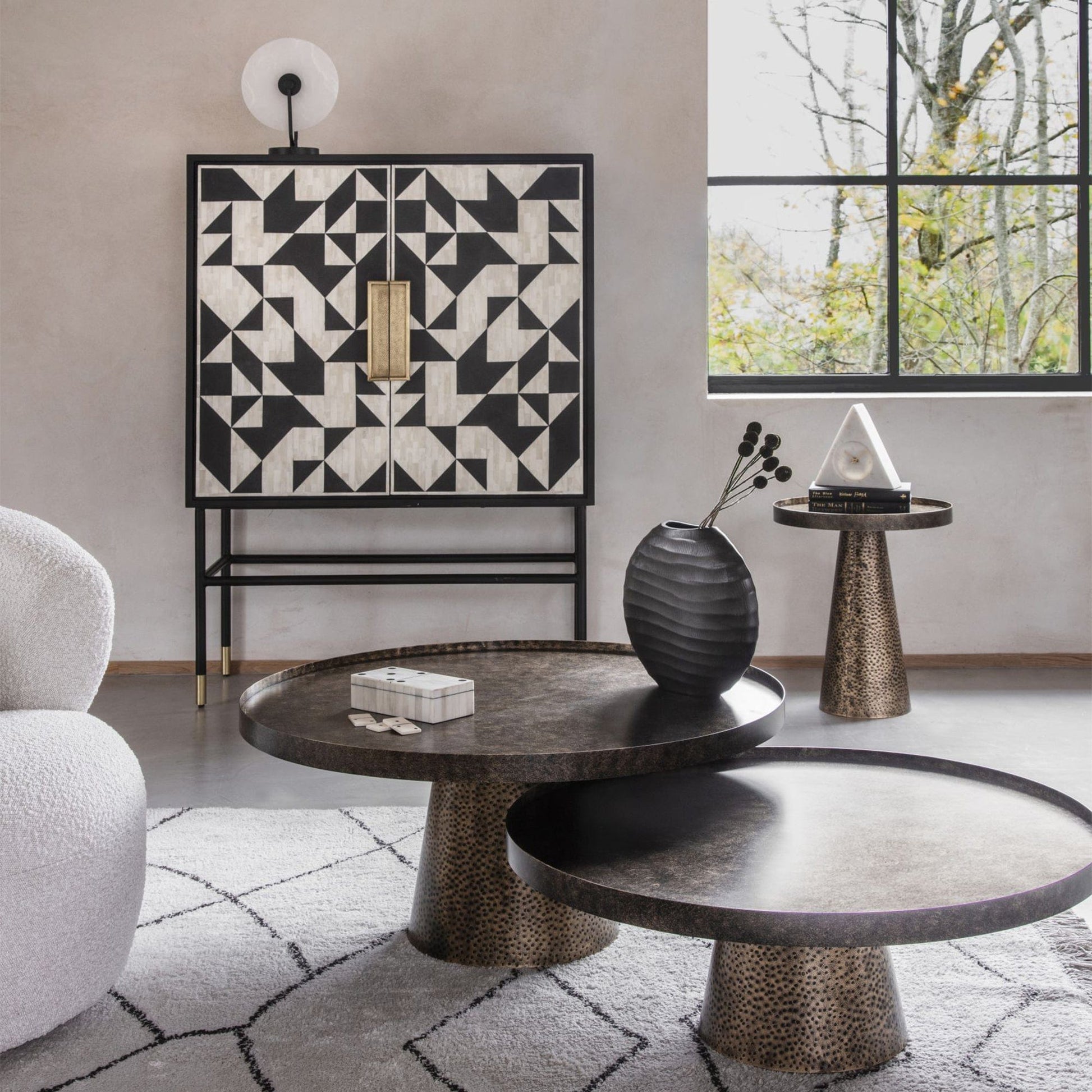 The Carmel collection comprises a range of occasional tables, all featuring a stunning mixture of rustic bronze and gold finishes, completed by characterful hammered effect bases. This range will add a warm modern charm to any interior.