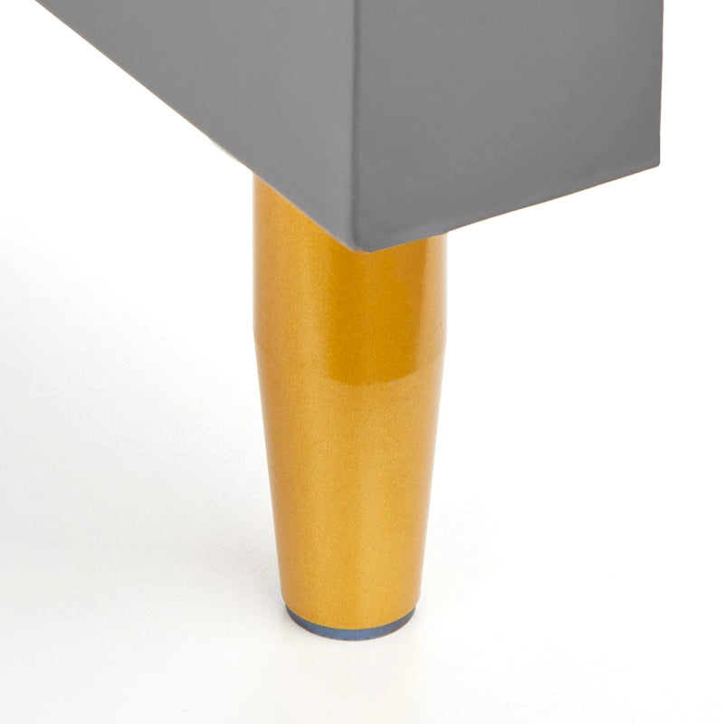 - Waterfall edge design with gold finished legs