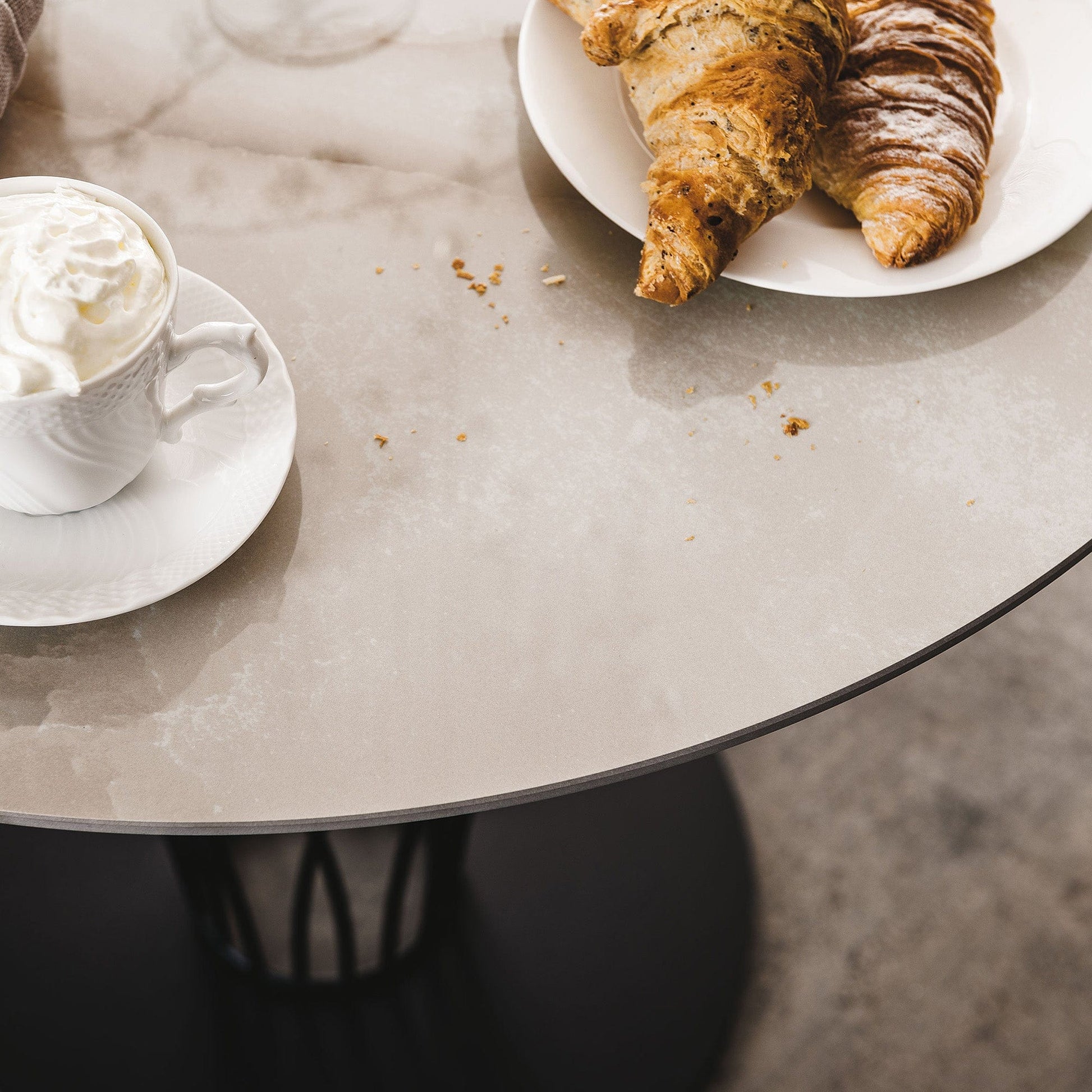 The Nido Keramik Bar Table features a round Ceramic top on an elegantly detailed steel base. Available in a choice of Finishes.