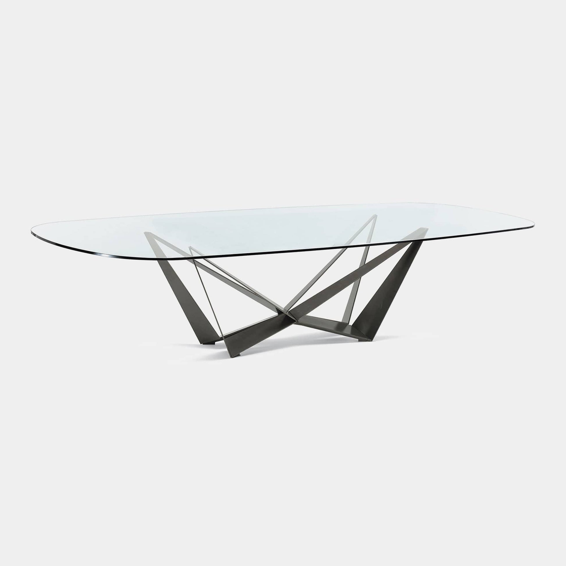 The Cattelan Italia Skorpio combines a clear glass top with a choice of different finished unique embossed lacquered steel bases. Choose from a large range of sizes, with the option of a D end style finish.