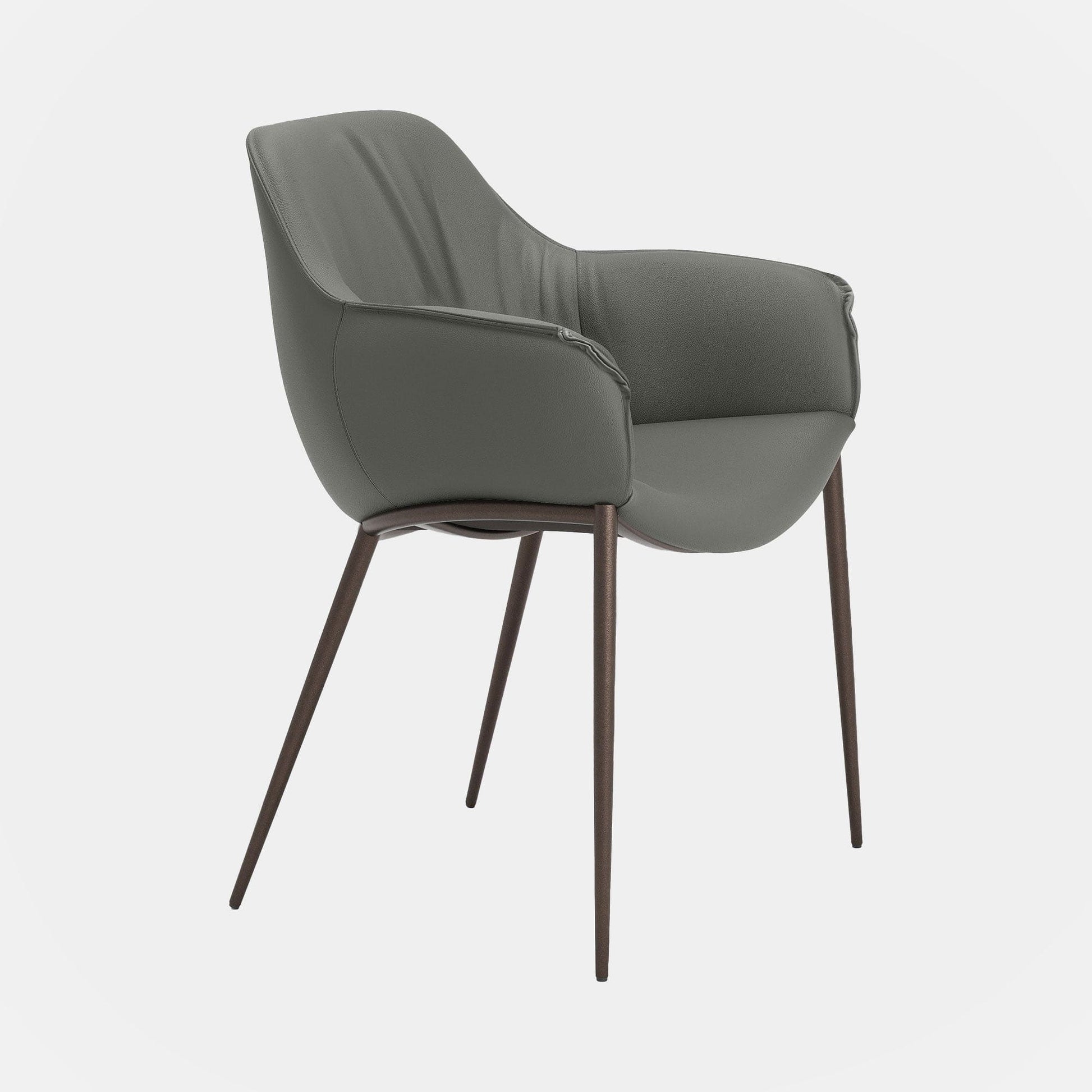 The rounded shapes in the Scarlett chairs provide a natural elegance that makes them suitable for furnishing a comfortable and welcoming designer dining room. The soft folds adorning the inside of the backrest contrast with the stretched frame that wraps around the body. The backrest, which is higher than usual for dining armchairs, is designed to provide more back support and maximum comfort over a longer period of time. A choice of finishes mean the chairs can be tailored to match any home.