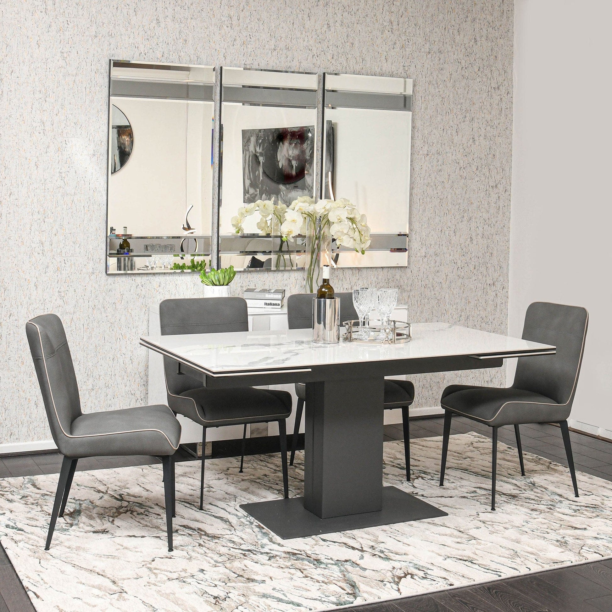 The Cento dining table offers convenient pull-out extension leaves to easily accommodate extra guests, and comes complete with your choice of brown or white ceramic table tops to perfectly complement your interior décor style. The range also boasts sturdy yet attractive dining chairs to help you choose the ideal configuration for any communal dining room.