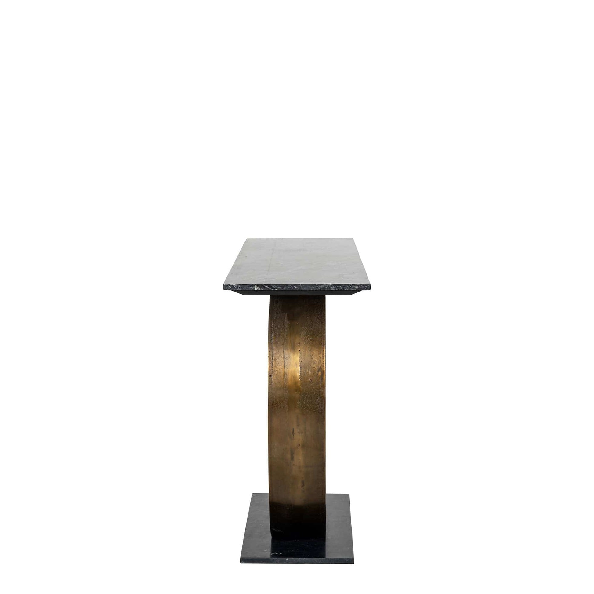The Diana console table is boldly characterised by a brushed metallic horseshoe frame, complemented beautifully by the black marble top, creating a statement opulent and glamorous look.