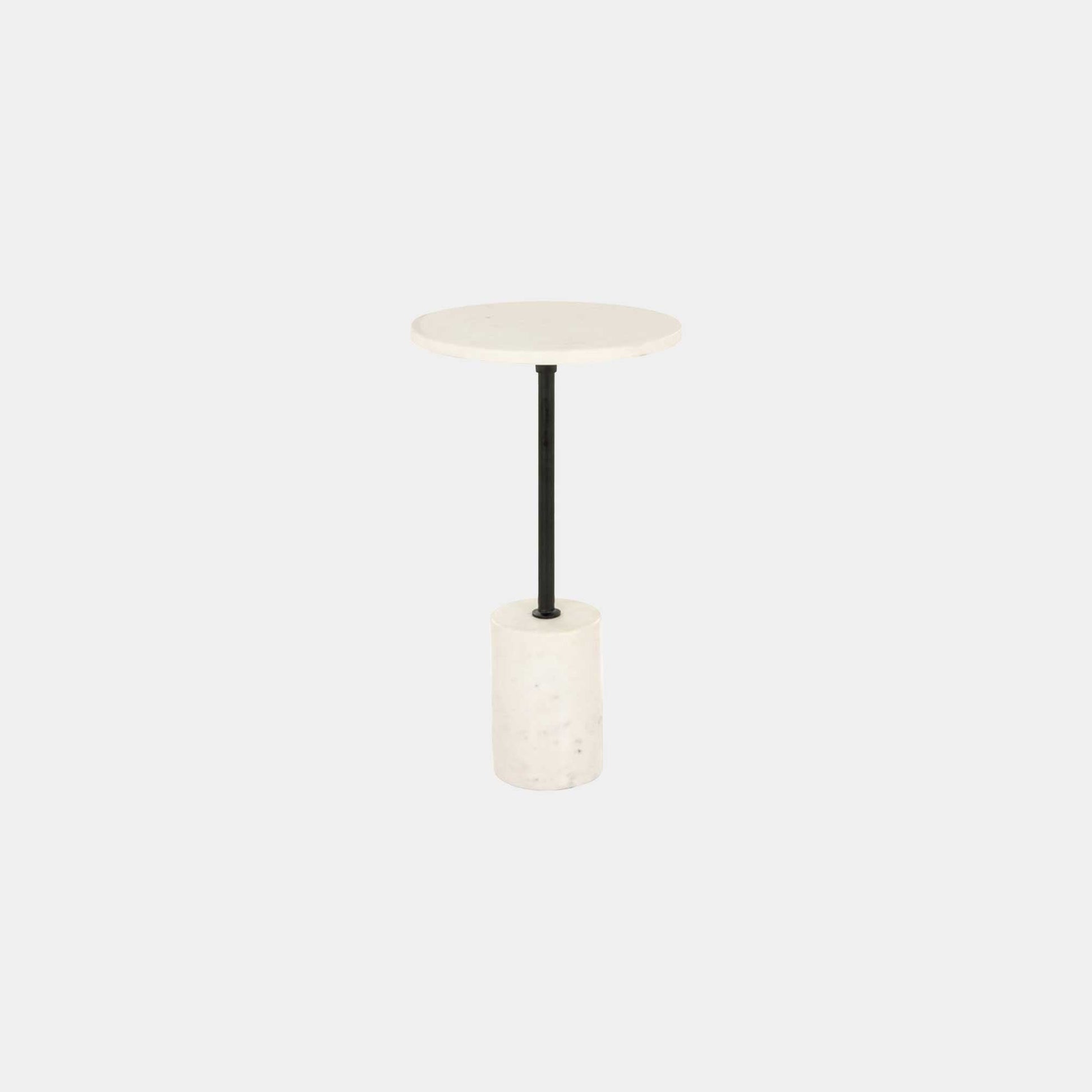 Donna is the perfect way to brighten up any corner. An opulent white marble top and base is contrasted by the slender black metal pillar, creating a simple yet extravagant look.