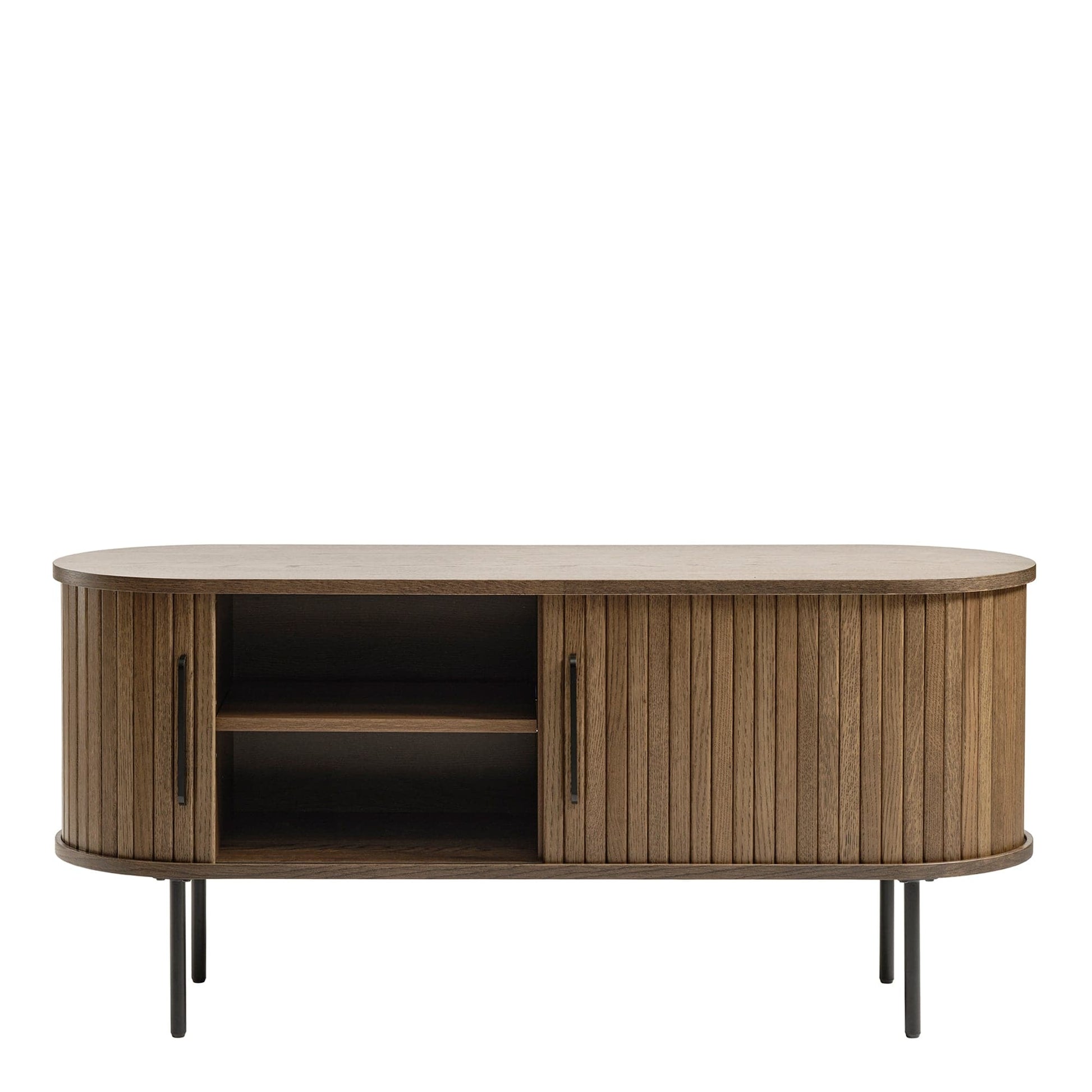 The dining range’s sideboards and cabinets come equipped with space-saving tambour doors that open all the way around, giving you full use of the interior space on offer. The Eden furniture collection also includes stylish round dining tables, coffee tables, dining chairs and more, all in the same natural oak veneer finish for a cohesive look.