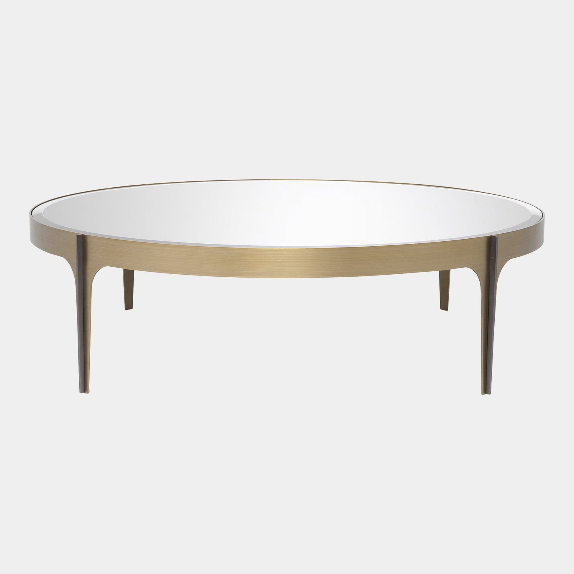 Featuring a mid-century modern design and a chic appeal, the Eichholtz Artemisa collection makes a statement with its elegant frame and selection of luxury finishes. The interior curves of the frame are accentuated by sleek bronze bars on the legs and a tabletop of bevelled mirror glass, bringing focus to the spaciousness within the solid materials shaping this piece.