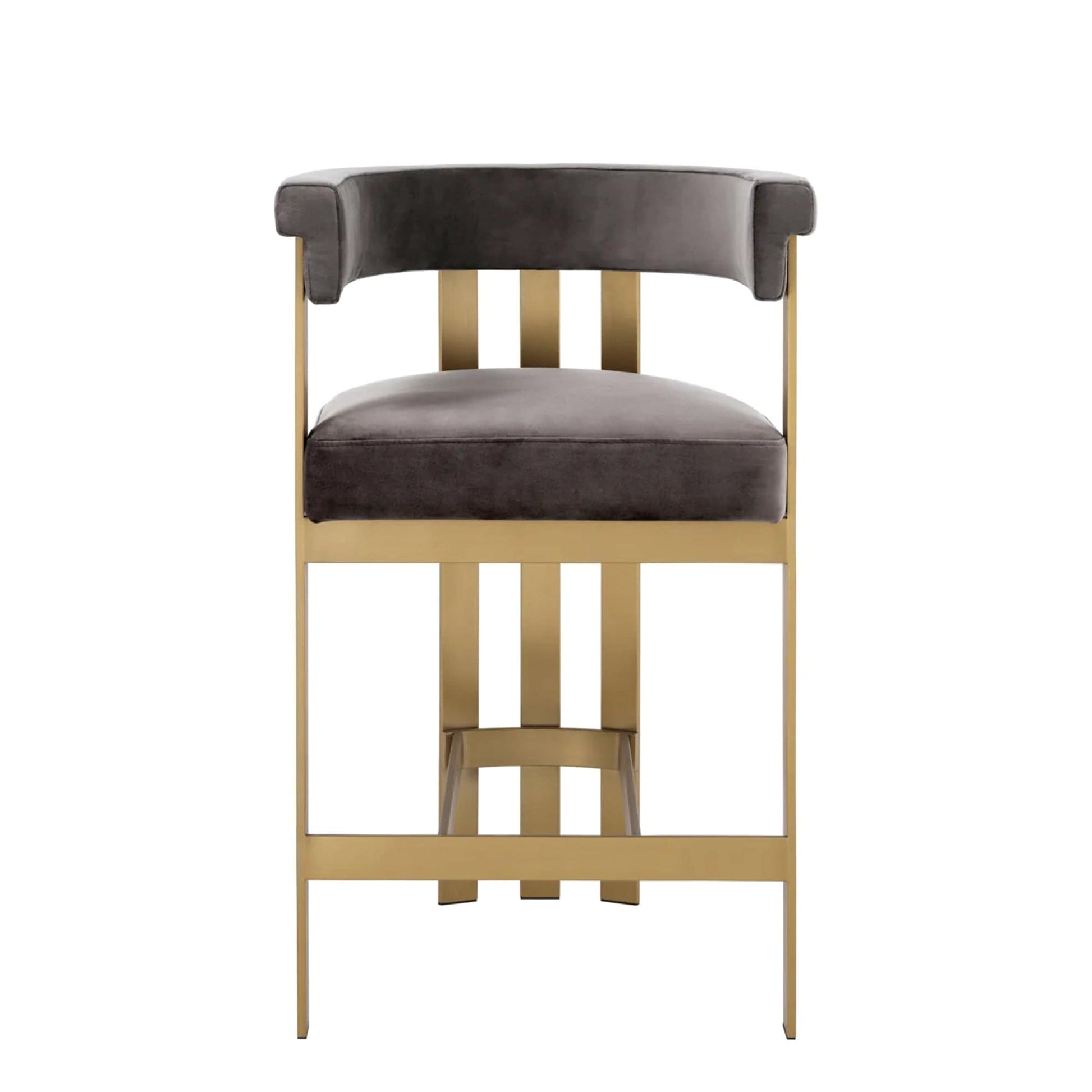 Create the perfect contemporary dining spaces with chic Clubhouse counter stools from Eichholtz. The counter stools feature a robust brushed brass frame and deep, comfortable seating that will keep everyone at your dining table cosy and eager to linger. The Clubhouse range by Eichholtz comes in two beautiful fabric options – bouclé cream or Savona grey velvet – to help you add striking finishing touches to your dining room design.