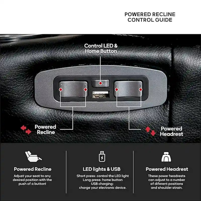 - Built-in USB Ports: USB changing plug is hidden in arm storage and which can be easily charged by connecting the power supply. This power home theater recliner chair delivers the ability to charge your tablet or phone while kicking back at home or at the office.