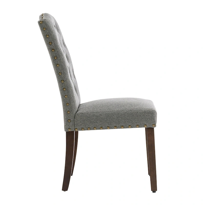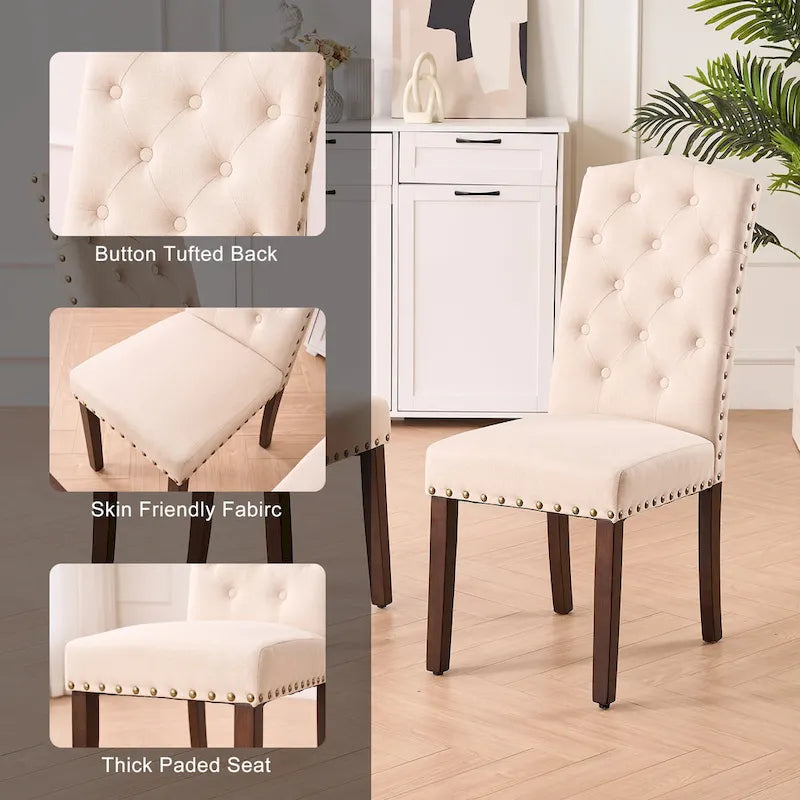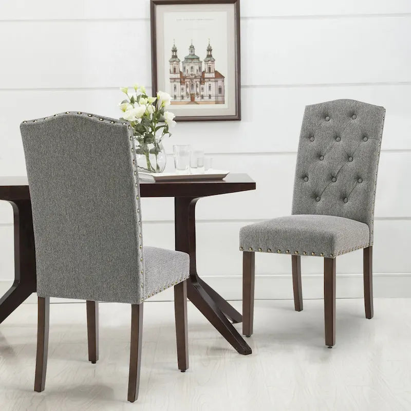 Fabric Upholstered Tufted High Back Dining Chairs with Nailhead Trim Set of 2