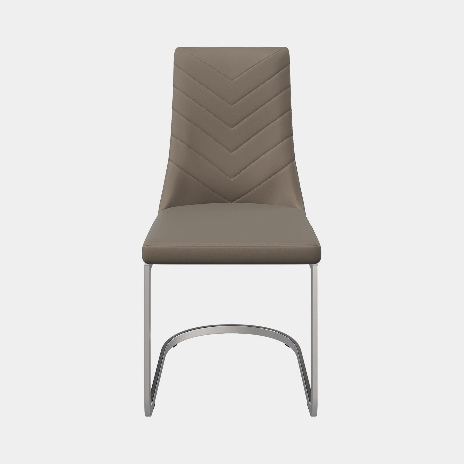 The Gospel dining chair, with curved backrest and elegant chevron stitching pattern, not only provides both comfort, but also contemporary flair. Crafted with Faux Leather, the comfortable cushioned seat pad elevates any dining experience, while the chrome cantilever leg adds a touch of modern elegance.