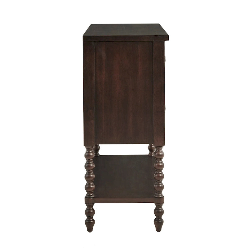 Complement your living space with the Madison Park Signature Beckett Accent Chest. This accent chest features a dark morocco finish, for a warm and inviting look. A double drawer and lower shelf provide storage, for essentials. Simple assembly required.