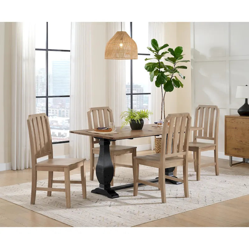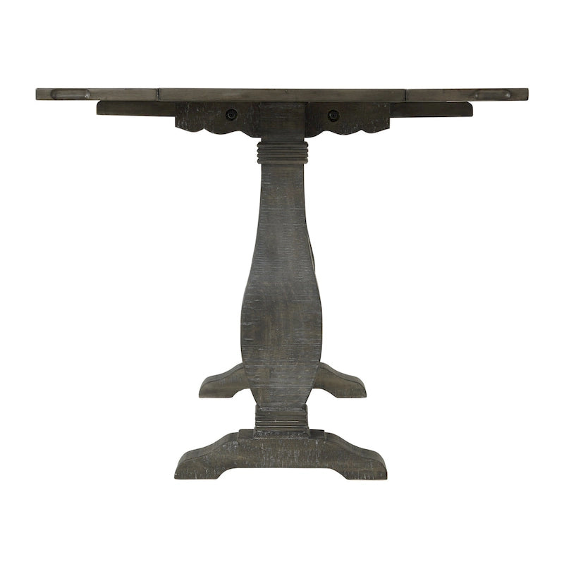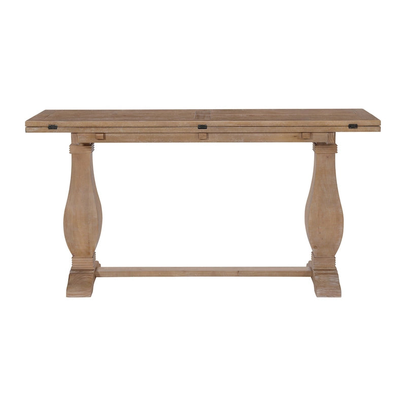 Complement your room with the stunning solid pine wood Napa flip-top Console Table. The table features a plank design and distressed marks. The perfect space-saver, this versatile piece has two flip open leaves, creating a sofa table, desk, or dining table for four. Double pedestal legs feature a classic baluster style with additional carved details.