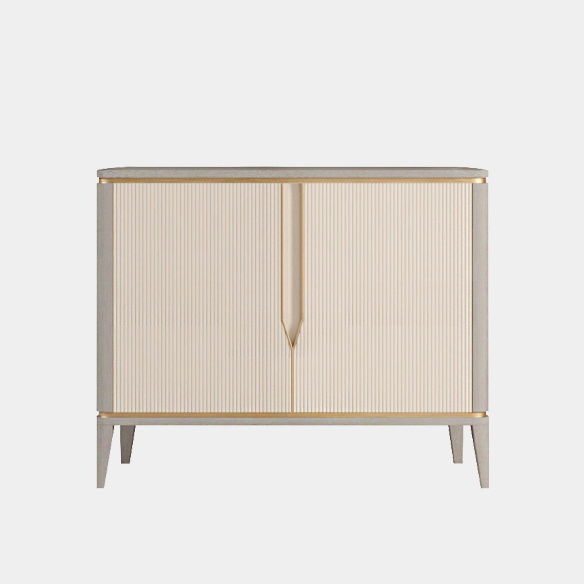 With its clean lines, premium materials, and subtle metallic touches, the Pera Dining Collection brings understated luxury to modern homes. Whether you're hosting a formal dinner or enjoying a quiet meal, Pera transforms the everyday into something special. Featuring fluted fronts and signature metallic-accented handles, the Pera sideboard offers understated luxury.