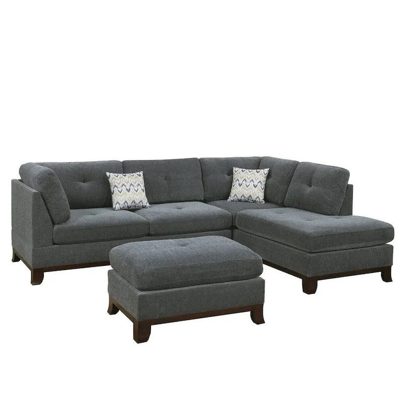 Poundex 3 Piece Fabric Sectional Sofa Set with Ottoman