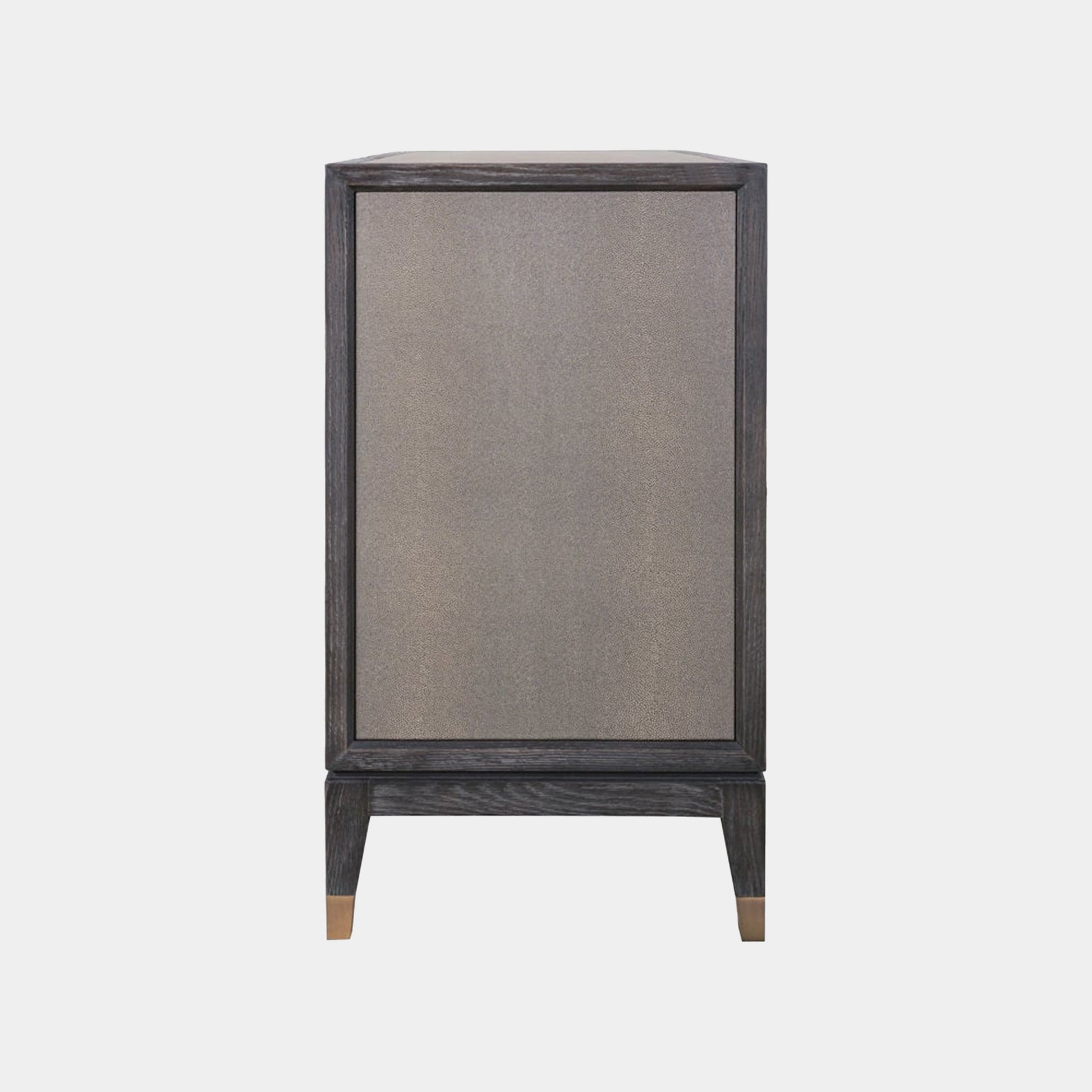 A splash of matte gold trim adds an elevated look to the Ridgeville collection, bringing a modern, luxurious touch to your home design. A dramatic contrast to the dark oak legs, gold trims provide a balancing mix of style and luxury. With its elegant shagreen finish, crafted from faux PU leather, the Ridgeville brings a unique, charm to any room. This collection blends modern sophistication with a luxurious feel, creating an inviting space that feels like a true retreat. Not only does it look beautiful, but it's easy to maintain offering both style and function. A whole line of coordinating pieces means you can easily coordinate the perfect set for your room.