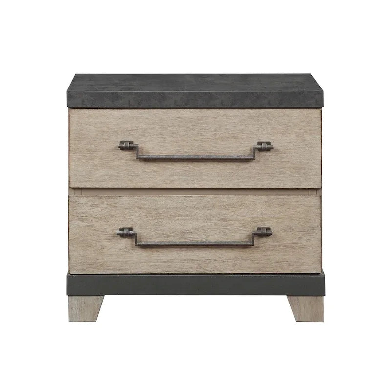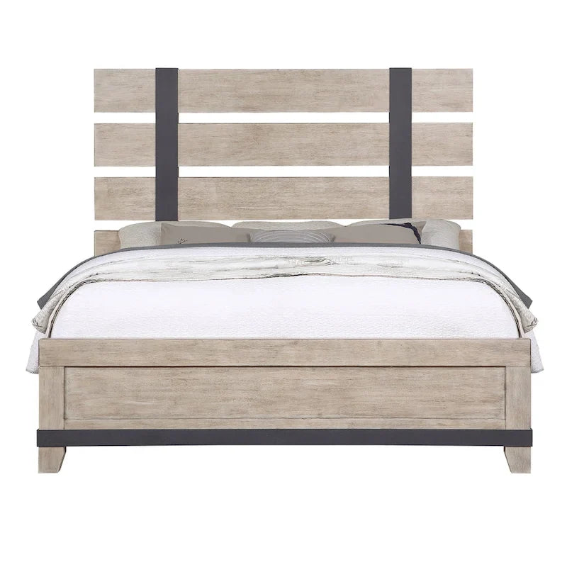 The upscale appeal of the Arbela Wood Slatted Panel Bed Set comes from its sleek design, choice of a weathered oak finish, and distressed gunmetal finish hardware. A low profile footboard with block feet, the bed includes metal slats and support legs. A box spring is required. This bed boasts a flat, sturdy base for support, along with darker-toned paneling. A high profile plank style headboard completes the overall look. The drawers feature metal slides that give you plenty of room to organize clothes and assign everything to a proper place. The simple design lends a casual contemporary accent to the room. Constructed of highly durable acacia solids, it's built to last for years.