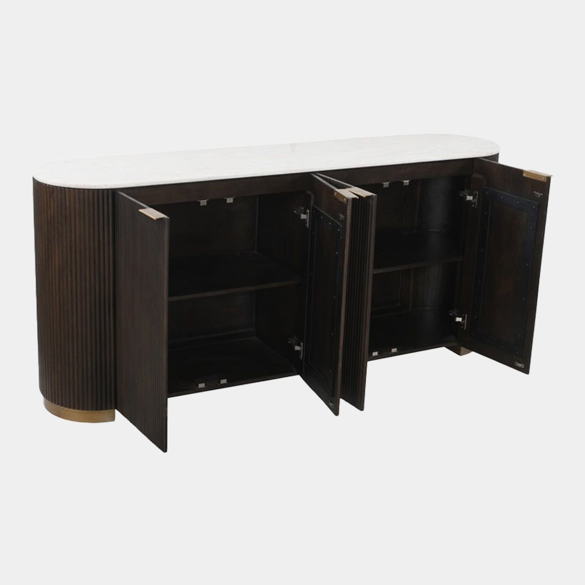 Create artistic interiors with the contemporary Seabrook dining range from . This bold and beautiful furniture collection pairs modern influences with striking silhouettes and forms, creating pieces that are as eye-catching as they are functional. The cornerstone of the range is the regal Seabrook dining table, which boasts a gorgeous marble top atop a warm-toned, ribbed wooden base. This unique combination of materials creates a perfect visual balance while offering a robust and comfortable dining surface ideal for intimate gatherings and vast celebrations alike. The range also boasts elegant bar units, coffee tables, and console tables, making it easy to create a coordinated look that seamlessly enhances your home’s ambience. Make an unmistakeable style statement at home with the Seabrook dining range.
