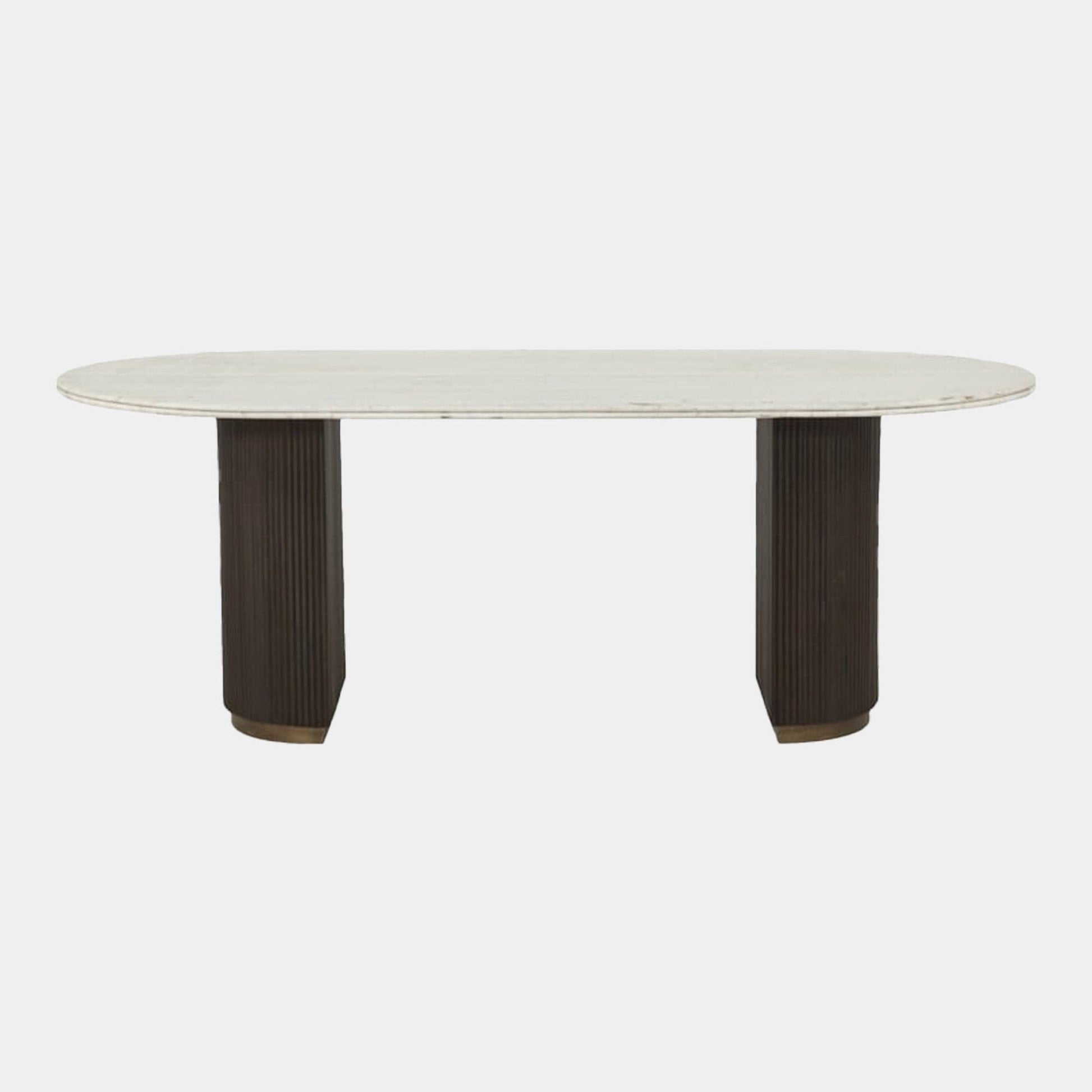 Make a bold statement in your dining space with the Seabrook Dining Table, a centrepiece from contemporary Seabrook collection. Measuring 210cm, this striking table features a luxurious marble top paired with a warm-toned, ribbed wooden base, blending modern design with timeless elegance. Perfect for both intimate dinners and grand gatherings, the Seabrook table offers a robust, heat-resistant surface that’s as practical as it is beautiful.