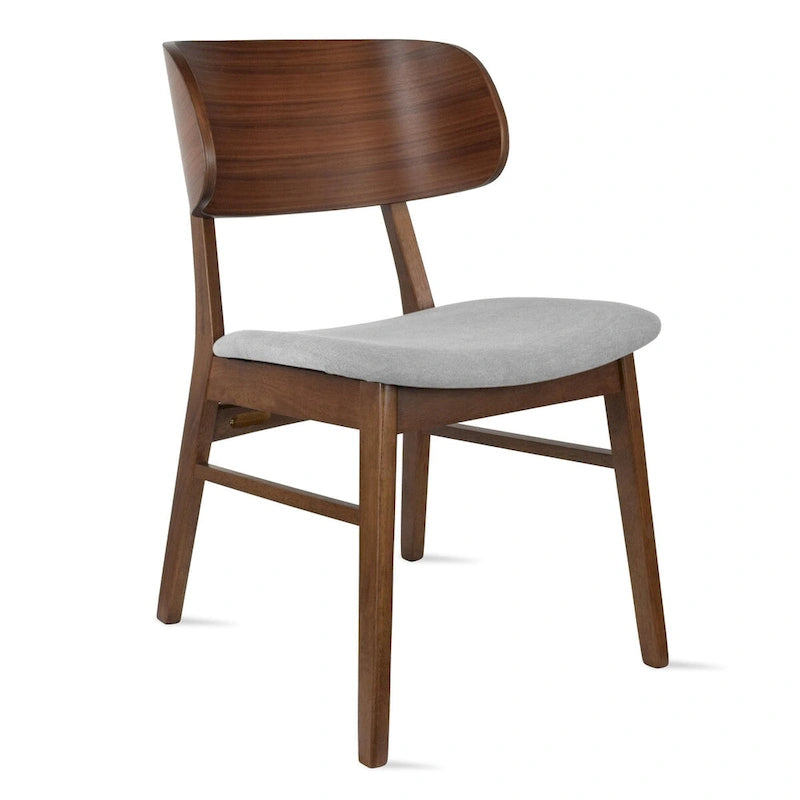 Set of 2 Retro Brown Wood Leg Dining Room Chair With Curved Back Fabric Cushions Upholstered Seat