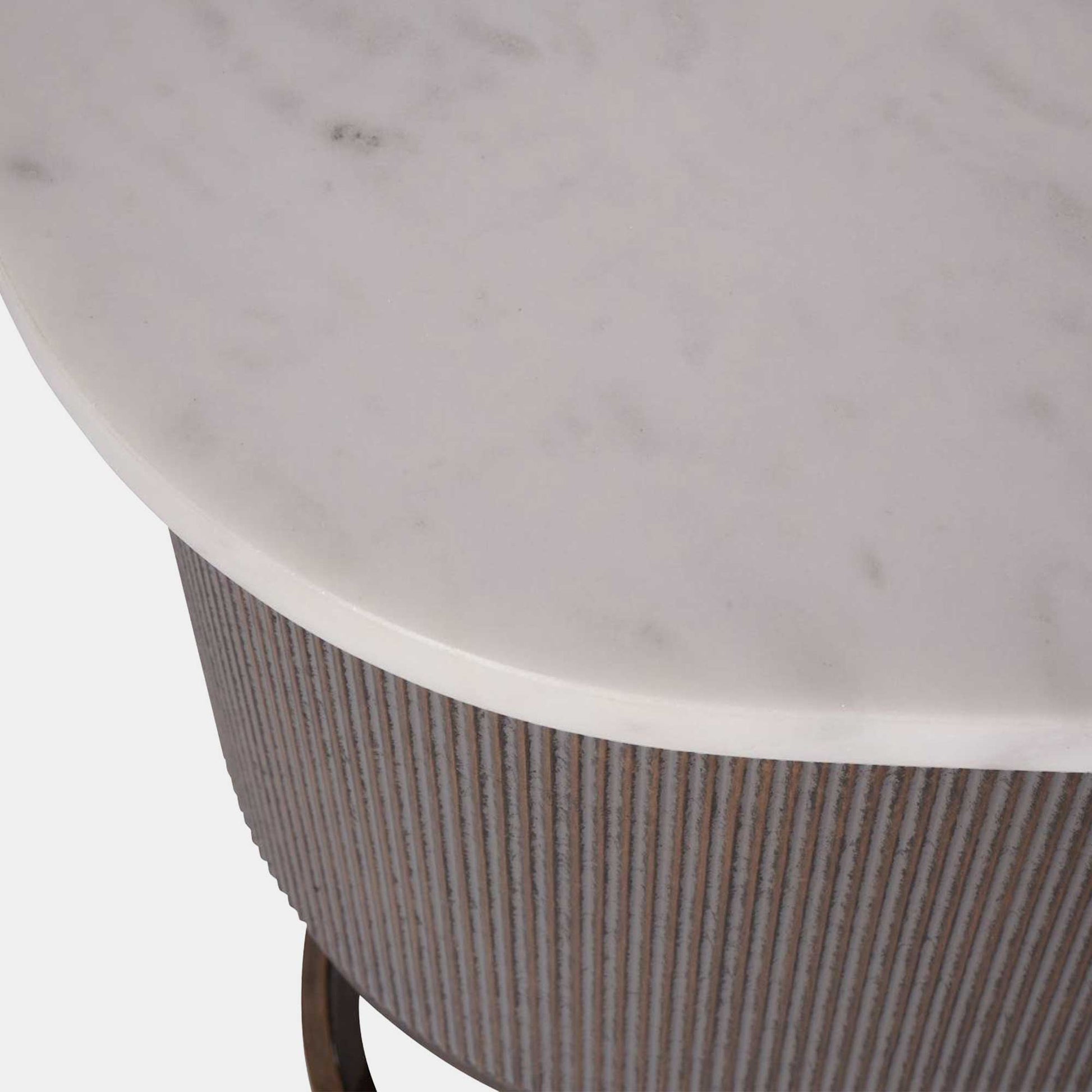 The Sutton is a unique occasional range with ribbed relief and tables with glass and marble tops. Mid-Century Modern style with a new look to liven up your home décor!