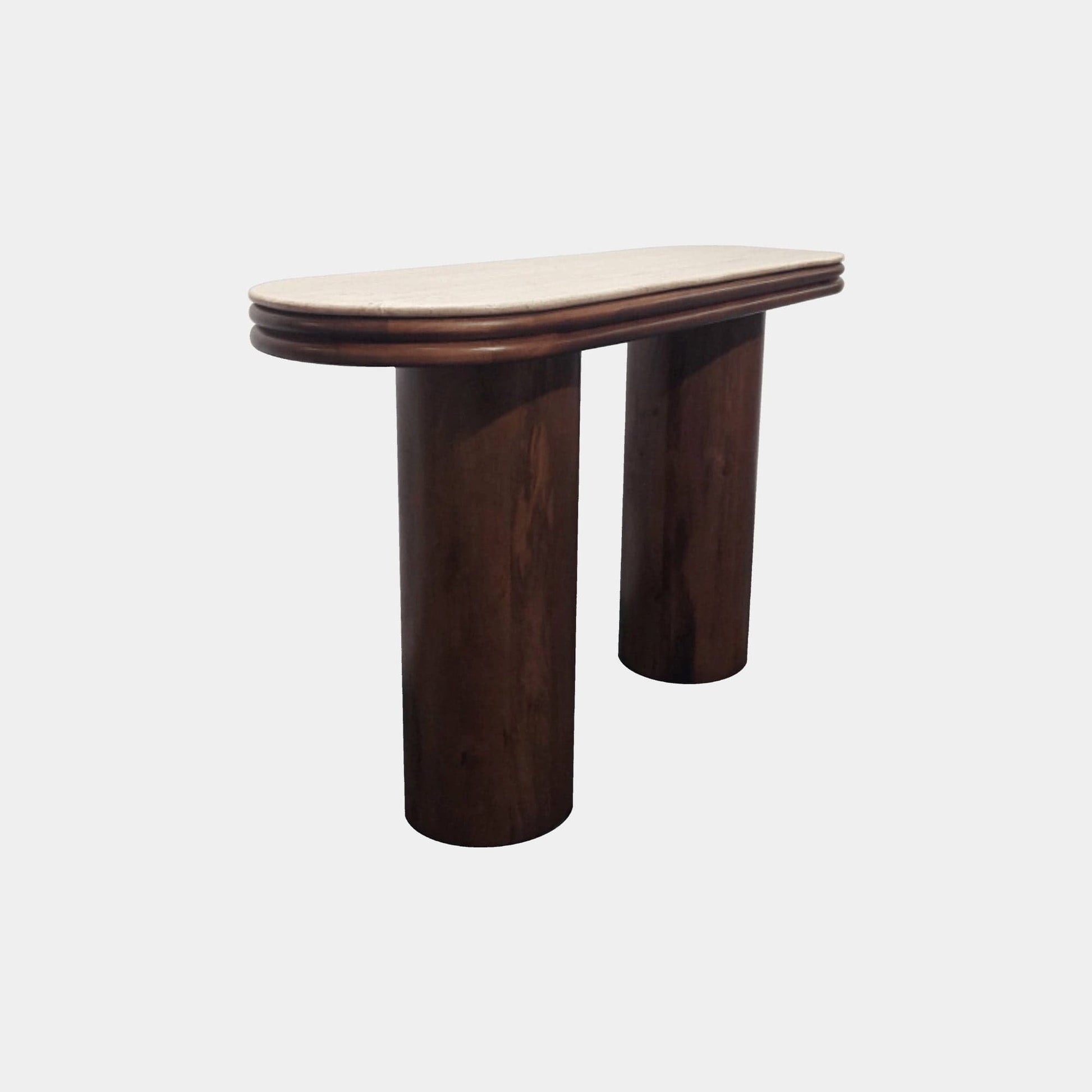Made from rich, durable mango wood, known for its strong and sustainable properties, each piece is complemented by an elegant travertine marble top, which offers a beautiful natural texture and timeless appeal
