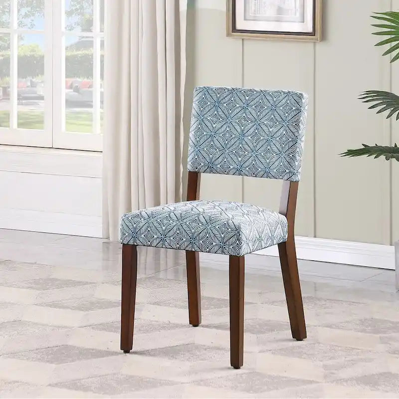 Bring style and comfort to your dining room or kitchen with The Gray Barn Elve Hill Dining Chair Set of 2. Upholstered in a beautiful indigo blue leave frame medallion print. These chairs offer both comfort and style. The open back design and minimal lines keep your space light and airy, while the fully upholstered seat provides the ultimate comfort. Sold as a set of 2, these chairs are easy to assemble and maintain.