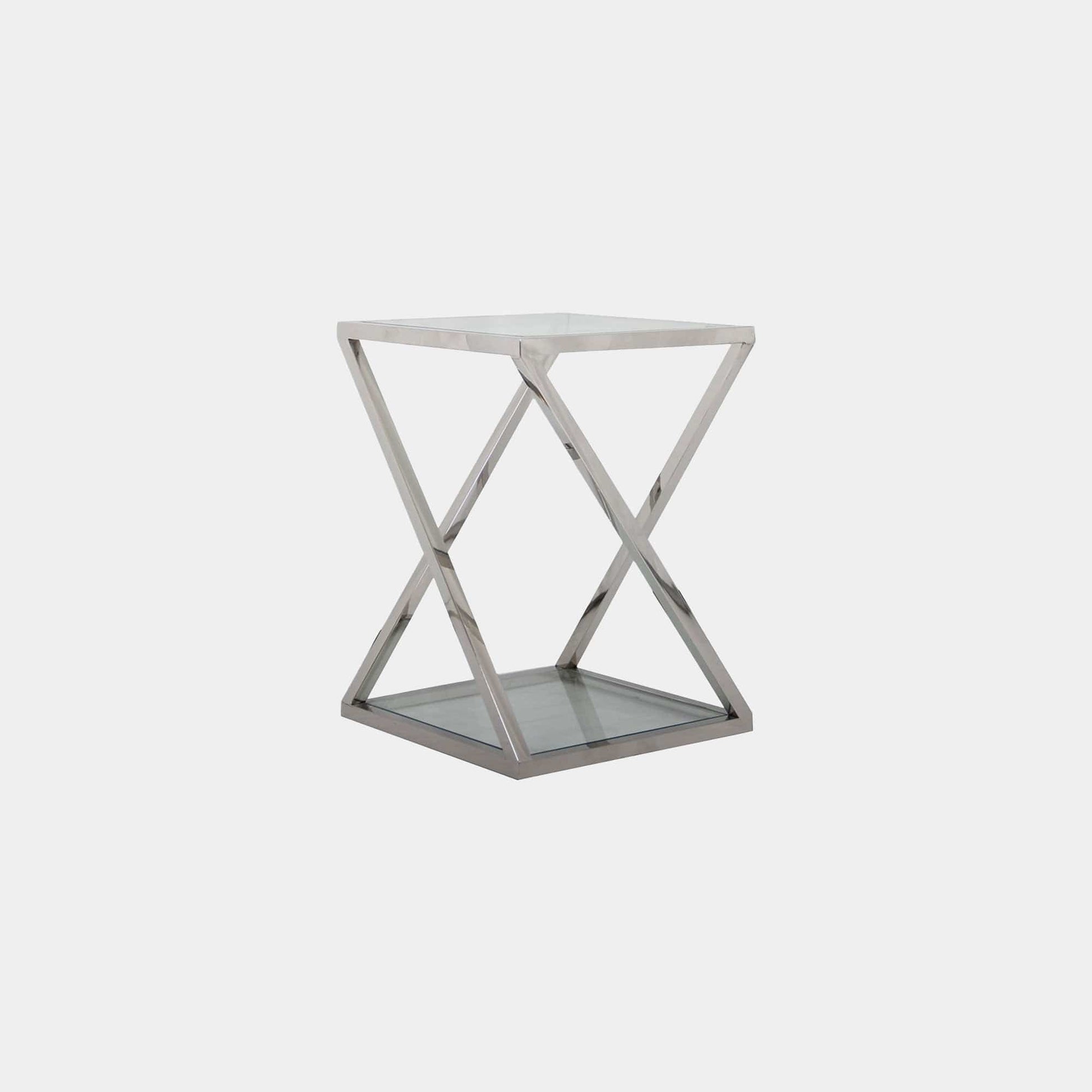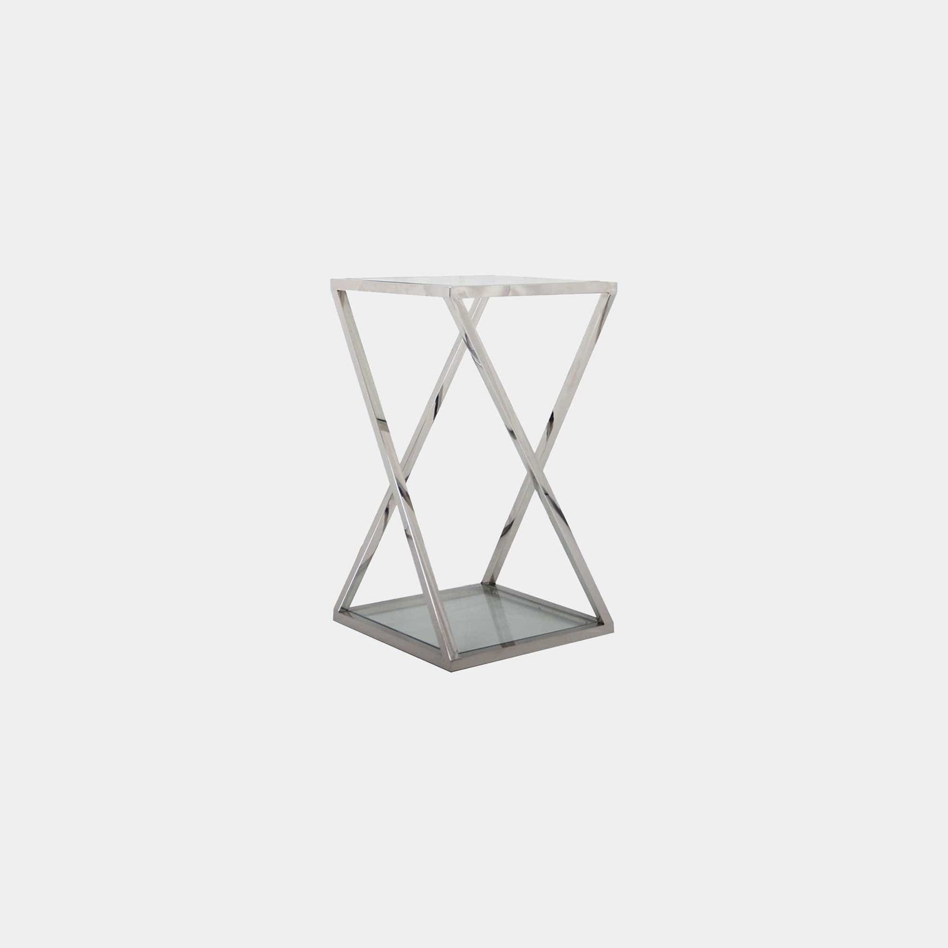 The Trento dining and occasional collection's contemporary cool design is the perfect addition to any dining and living room. Complete with clear glass tops & stainless steel frames.