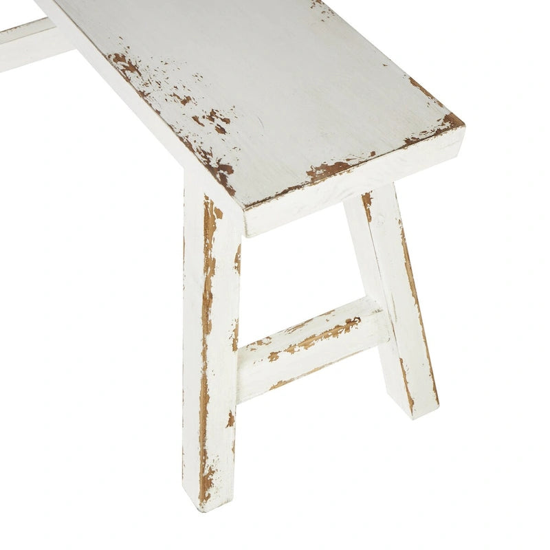 - Rectangle entryway room benches set showcases a washed finish with one bench being brown and one being white with distressing
